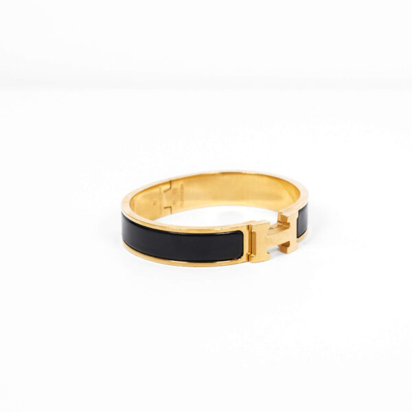 Dieser Armreif ist eine Ikone! Der Hermès Armreif Clic H gehört in jede Hermès Sammlung! In der klassischen Schwarz – Gold Ausführung ist dieser Armreif schwer zu finden.