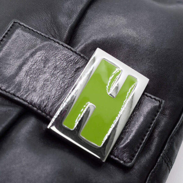 Dieses Vintage Schätzchen lässt sich bequem schultern. Sie verfügt über ein Hauptfach, welches in einem grünen, hochwertigem Seidenstoff ausgekleidet ist und über ein Einsteckfach, welches sich über einen Reißverschluss verschließen lässt. Die Schultertasche wird über einen Druckknopf verschlossen.