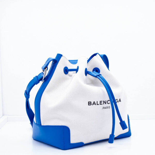 Ein echtes Highlight dieses seltene Balenciaga Modell: Tragen Sie diese trendy Beuteltasche sportlich und praktisch Crossbody. Innen ist die Tasche in hochwertigem blauem Stoff ausgekleidet und verfügt über eine seperate Pochette, welche sich an der Tasche befestigen lässt.