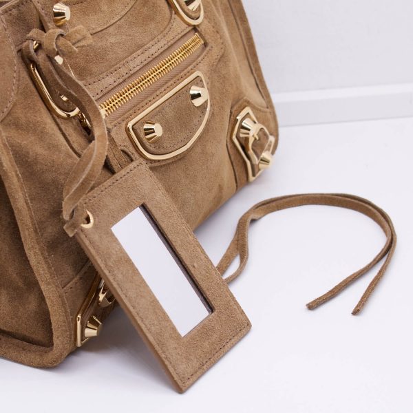 Das Modell City Bag des Modellabels Balenciaga ist schon seit vielen Jahren eine Must-Have Bag. Dieses Modell verbindet sportliche Leichtigkeit ebenso wie feminine Eleganz. Die Minitasche kann wunderbar in der Hand getragen werden oder durch einen verstellbaren Schulterriemen auch als Crossbody-Bag umgehangen werden. Wahrlich eine Handtasche, die Abends auf eine Party mitgenommen werden kann oder Tagsüber zum Shoppen in die Stadt. Innen ist die Tasche in schwarzem Stoff ausgekleidet und verfügt über ein Einsteckfach, welches sich über einen Reißverschluss verschließen lässt. Der obligatorische Balenciaga Spiegel, ist in passender Optik zu der Tasche, selbstverständlich auch vorhanden.