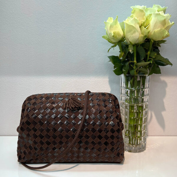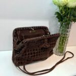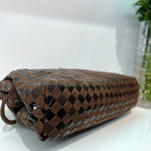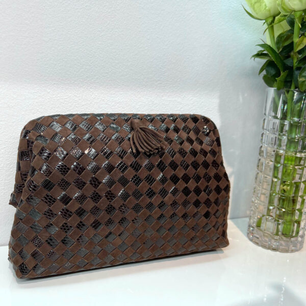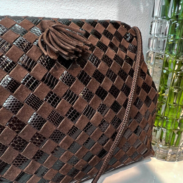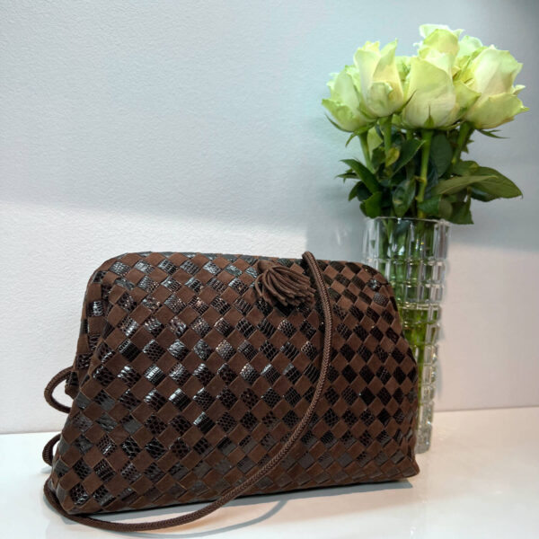 Tragen Sie diese Umhängetasche lässig als Crossbodybag oder als Clutch. Die Tasche verfügt über ein Hauptfach und ein Einsteckfach, welches sich mit einem Reißverschluss schließen lässt. Der Schulterriemen lässt sich durchs einfache Knoten verstellen.