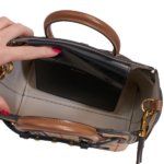 Dieses Modell aus dem Hause Burberry besticht durch die schlichte, praktische Form und den zweifarbigen Schultergurt. Die Tasche kann elegant in der Hand oder bequem Crossbody getragen werden.