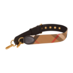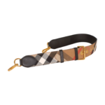 Ein hochwertig gefertigter Schulterriemen von Burberry. Schwarzes Leder, Nova Check Textil und zwei goldene Karabiner vollenden diesen klassischen Trageriemen.