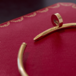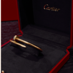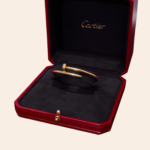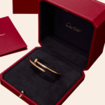 Dieser elegante Cartier Armreif lässt sich durch seinen Click-Verschluss leicht um das Handgelenk gelegen und sicher verschließen.