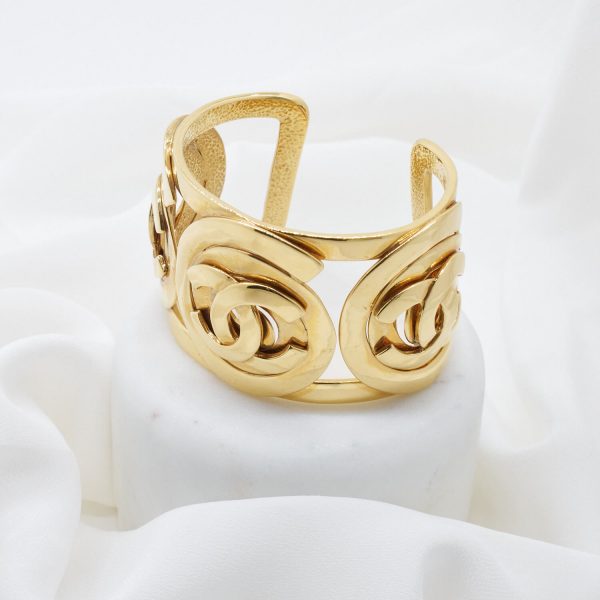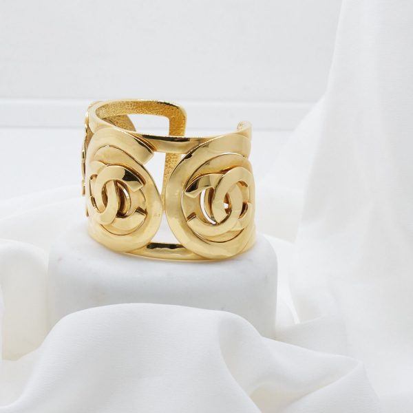 Unsere Chanel Vintage Herzen schlagen bei diesem Schmuck höher. Dieser Chanel Armreif lässt sich durch seine Öffnung leicht und bequem anlegen. Vintage Chanel Schmuck steht für Qualitativ sehr hochwertig verarbeiteten Schmuck. Dieser Armreif ist massiv verarbeitet und lässt den Arm der Frau trotzdem einzigartig feminin aussehen.