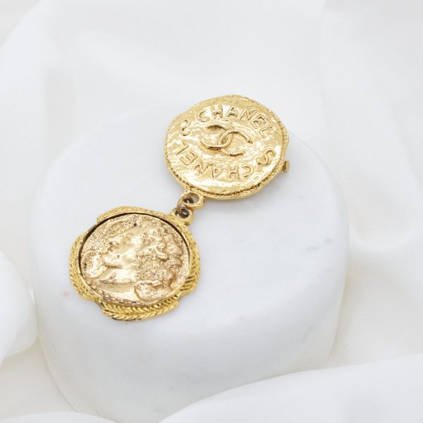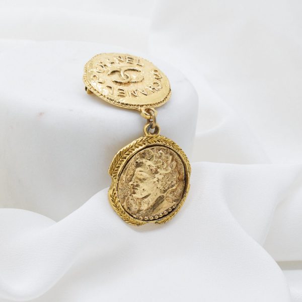 Diese Brosche ist ein Beispiel für hochwertig verarbeiteten Vintage Schmuck von Chanel. Über ein Stecknadelsystem lässt die Brosche sich wunderbar sicher befestigen.