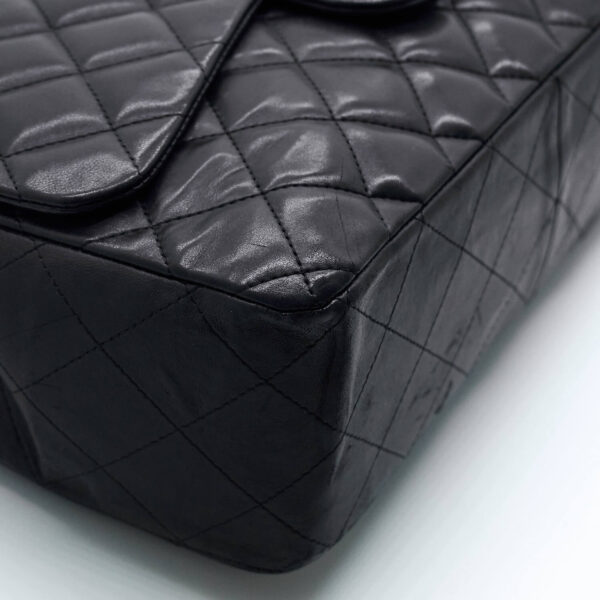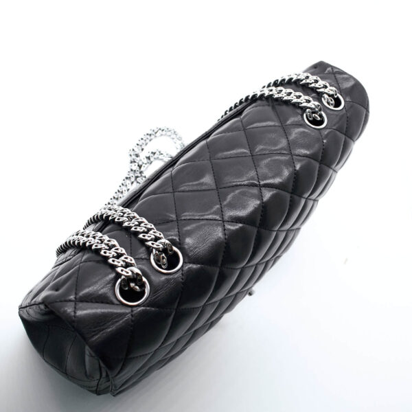 Eine Ikonische Handtasche in Jumbo Ausführung. Der einzigartige Kettenriemen lässt keine Wünsche offen. Die Tasche kann elegant in der Hand, schick über die Schulter getragen werden oder als Crossbodybag getragen werden. Der Innenraum ist in hochwertigem, schwarzen Leder ausgekleidet und verfügt über ein Einsteckfach, welches sich über einen Reißverschluss schließen lässt.