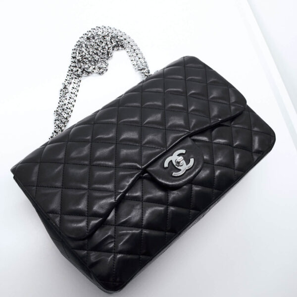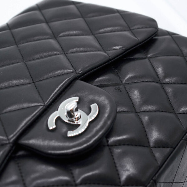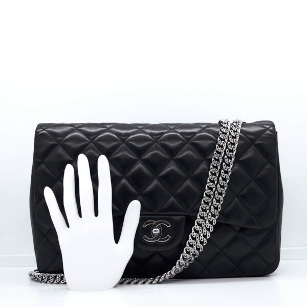 Ein Traum aus dem Hause Chanel in zeitloser Ausführung: Ein Zusammenspiel aus weichem, schwarzem Glattleder und klassischer, silberner Hardware. Gestepptes Leder und Kettenriemendetails lassen jedes Chanel-Liebhaberherz höher schlagen.