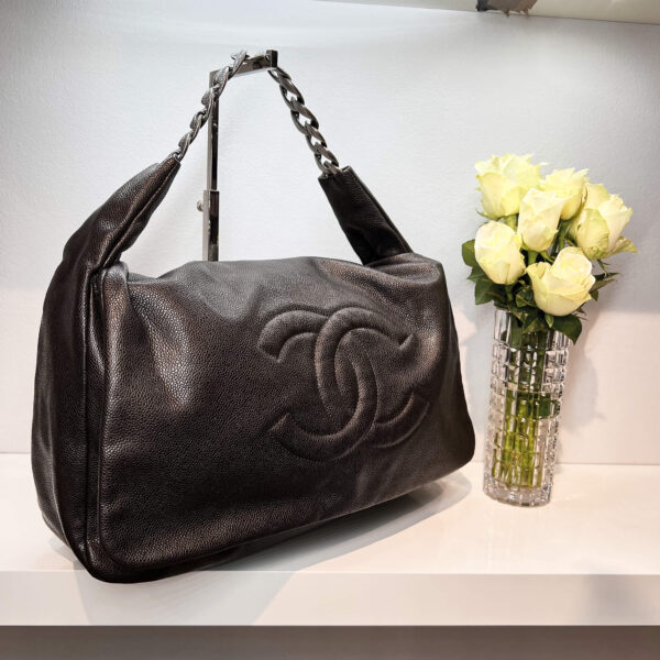 Diese Tasche kann durch ihre Größe der perfekte Alltagsbegleiter für Sie werden! Das große CC Logo, das Caviarleder und der Kettenriemen zeichnen diese Ikone aus.