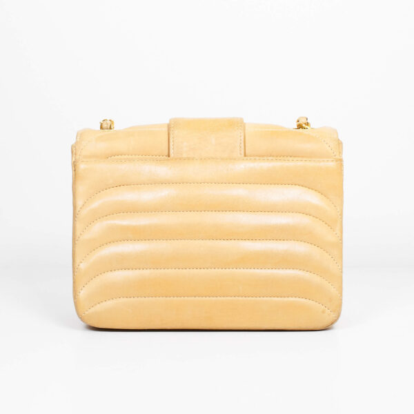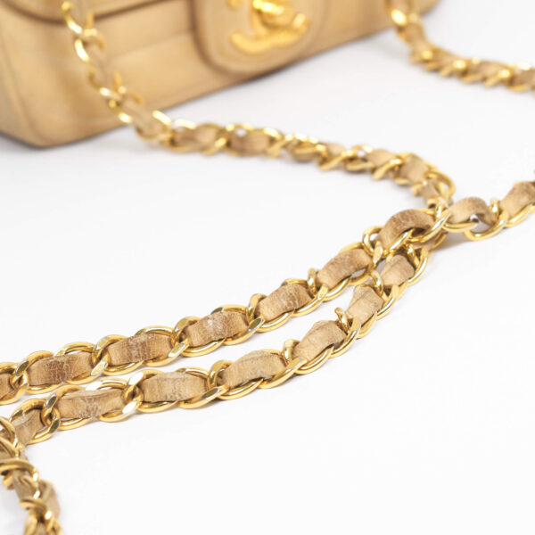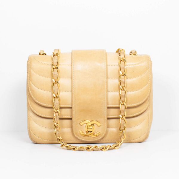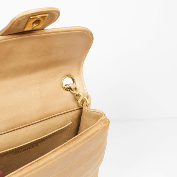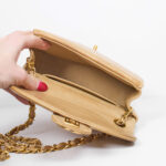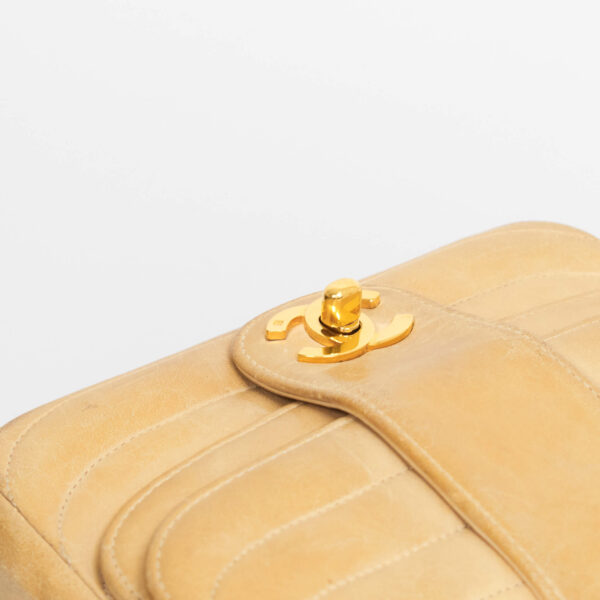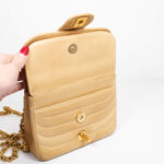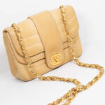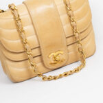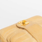 Diese Vintage Chanel Double Flap Bag kann der Alltagsbegleiter oder die Highlight Tasche für einen besonderen Anlass sein. Der große Verschluss als CC Logo und das gesteppte Leder zeichnen diese Ikone aus. Der Kettenriemen ist nicht verstellbar, sie kann als Umhänge- oder Schultertasche getragen werden. Innen befindet sich ein Einsteckfach, vorne und hinten jeweils ein weiteres Nebenfach.