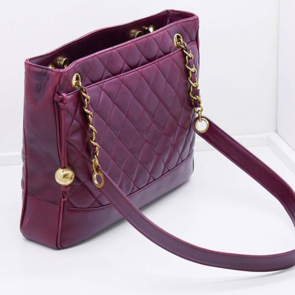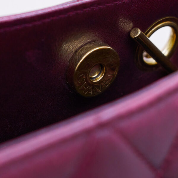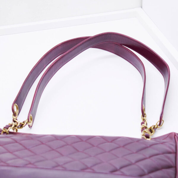 Mode ist vergänglich, diese Chanel Tasche ist es nicht. Dieses Vintageschätzchen kann über zwei große, goldene Magnetverschlüsse verschlossen werden. Im Inneren befinden sich zwei weitere Fächer, welche sich über Reißverschlüsse schließen lassen. Außerdem befindet sich außen auf beiden Seiten jeweils ein weiteres Einsteckfach. Die Tasche kann elegant in der Hand oder schick über die Schulter getragen werden.