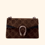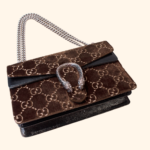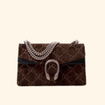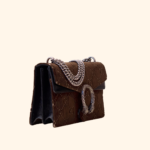 Eine Traumtasche von Gucci und das in der perfekten Größe! Die Gucci Dionysus Schultertasche ist auf jeden Fall ein Blickfang: zeitloses Design, schönes, braunes Samt und schwarze Lackleder Details & eine silberner Hardware. Der Tigerkopf-Verschluss und der Kettenriemen vollenden diesen Gucci Klassiker.