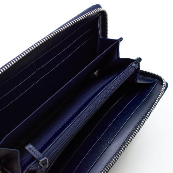 Diese Geldbörse verfügt über vier große Fächer, eines davon lässt sich über einen Reißverschluss verschließen. Ebenso finden in diesem Portemonnaie zwölf Karten Platz. Geschlossen wird es ringsum über einen hochwertigen, silbernen Reißverschluss.