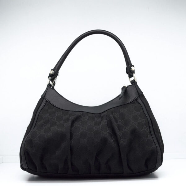 Das Gucci Canvas wird niemals aus der Mode kommen – Diese Tasche auch nicht. Sie kann schick in der Hand getragen werden oder über leichte Kleidung geschultert werden. Das Innenfach lässt sich über einen Reißverschluss schließen. Schwarzes, hochwertiger Stoff kleidet den Innenraum aus und ein schmales Einsteckfächer und ein Fach, welches sich mit einem Reißverschluss schließen lässt, vollenden diesen.
