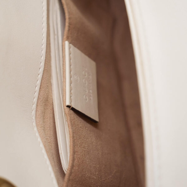 Die Farbe wird bei Gucci als Weiß geführt – Wir würden die Tasche eher als Cremefarben oder Off-White bezeichnen.