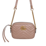 Es handelt sich bei diesem Designerschätzchen um eine wunderschöne Mini Marmont aus dem Hause Gucci. Tragen Sie diese Tasche im Alltag als Crossbodybag. . Im Inneren ist die Tasche in einem hochwertigen, beigefarbenen Stoff ausgekleidet.