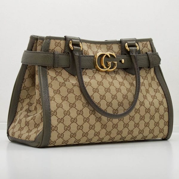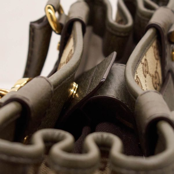Das Gucci Canvas wird niemals aus der Mode kommen – Diese Tasche auch nicht. Sie kann schick in der Hand getragen werden oder locker geschultert werden. Das Innenfach lässt sich über einen Druckknopf schließen. Beiger, hochwertiger Leinenstoff kleidet den Innenraum aus und zwei Einsteckfächer und ein Fach, welches sich mit einem Reißverschluss schließen lässt, vollenden diesen.