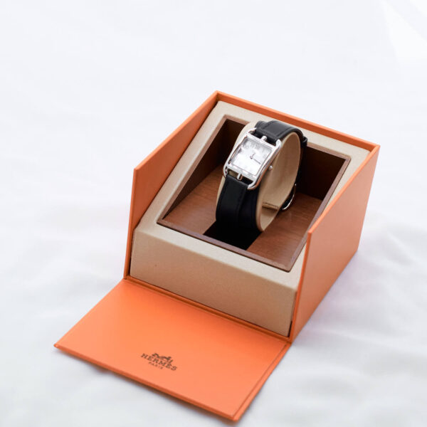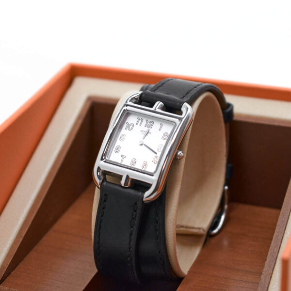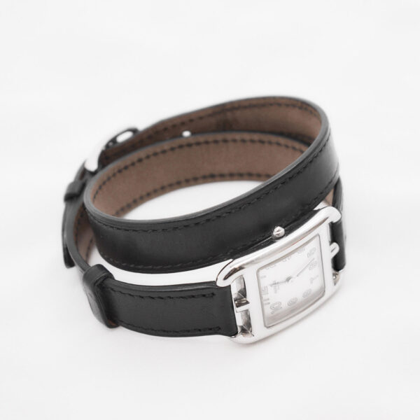 Diese Uhr des Luxushauses Hermès wird das Herz jeder Frau rauben. Die Uhr verfügt nicht nur über ein Lederarmband, sondern gleich über zwei Lederarmbänder, welche je nach Wunsch gewechselt werden können. Ebenso können weitere Farben bei Hermès nachgekauft werden. Die Uhr funktioniert tadellos.