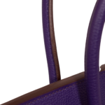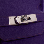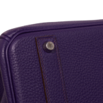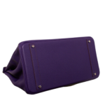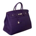 Das Modell Birkin aus dem Hause Hermès – pure Eleganz! Ihre Form verleiht ihr eine klassische Leichtigkeit, weshalb sie niemals aus der Mode kommen wird. Sie lässt sich feminin in der Hand oder Armbeuge tragen. Das matte Leder lässt die Purpur Farbe noch edler wirken, die glänzende Hardware setzt sich noch mehr ab.