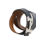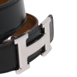 Eine Ikone aus dem Hause Hermès – schwarzes Leder in Kombination mit einer matt-silbernen H Schnalle. Der perfekte Hingucker zu einem lässigen Outfit.