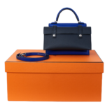 Hermès Kelly „Doll Picto“ in Blau Royale, Nata und Gold
