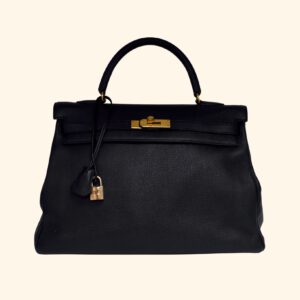 Das Modell Kelly aus dem Hause Hermès. Sie ist die begehrteste Tasche unter den Designer Ikonen. Sie lässt sich feminin in der Hand oder durch einen der beiden Riemen elegant am Körper tragen.
