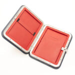 Tragen Sie dieses wunderschöne Täschen als Clutch feminin in der Hand oder als praktische Geldbörse. Im Inneren befinden sich praktische Karten- und Einsteckfächer. Ebenso ist das Innere in einem hochwertigen, roten Leder ausgekleidet. Die Tasche wird über einen hochwertigen, silbernen Verschluss sicher verschlossen.