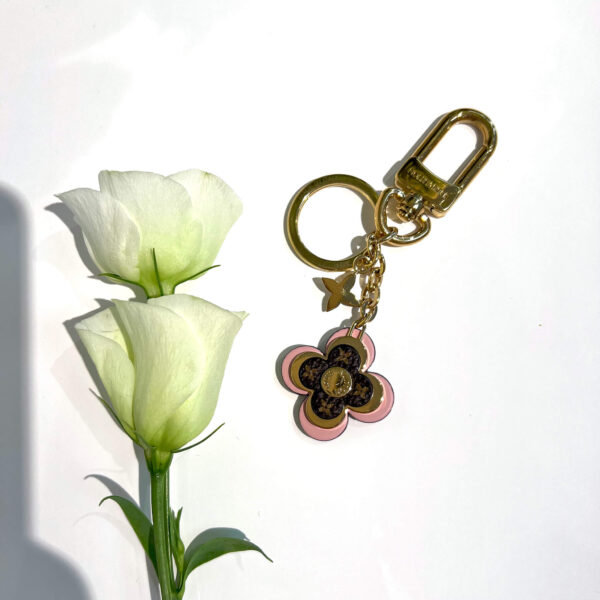 Ein wunderschöner „Flower“ Anhänger – Canvas, mit rosa Lederdetails und goldenen Elementen.