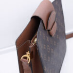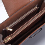 Tragen Sie diese Tasche über Ihrer Schulter oder bequem umgehangen. Mit dem Steckverschluss lässt sich die Tasche im nu öffnen und schließen. Im Inneren ist sie ebenfalls mit Leder ausgekleidet und verfügt über 2 Reißverschlussfächer und 2 getrennte, offene Fächer. Das kleine Reißverschlussfach ist leider nicht mehr intakt, da sich das Material verändert hat, es kann daher nicht benutzt werden.