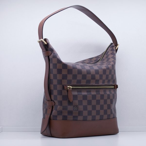Die Modelle Diane erobert unsere Herzen durch ihren praktisch, verstellbaren Schultergurt. Durch ein Gürtelsystem, links und rechts an der Tasche, lässt sich in wenigen Handgriffen aus einer schönen Handtasche eine praktische Schultertasche zaubern. Der Schultergurt ist lang genug um sie Crossbody zu tragen. Außen befindet sich ein separates Fach, welches sich über einen Reißverschluss schließen lässt. Innen ist die Tasche aus edlem, bordeauxfarbenen Stoff ausgekleidet und verfügt über drei Einsteckfächer. Außerdem handelt es sich hierbei um das robusteste Canvas der Louis Familie: Damier Ebene.