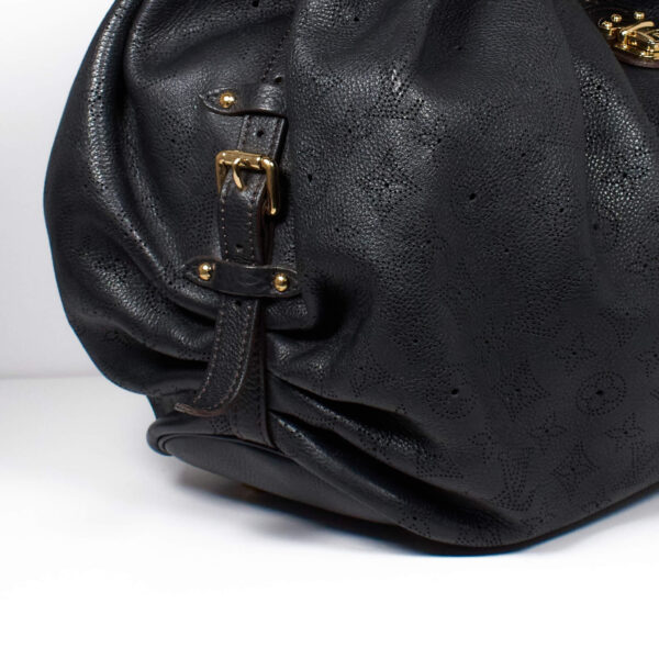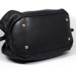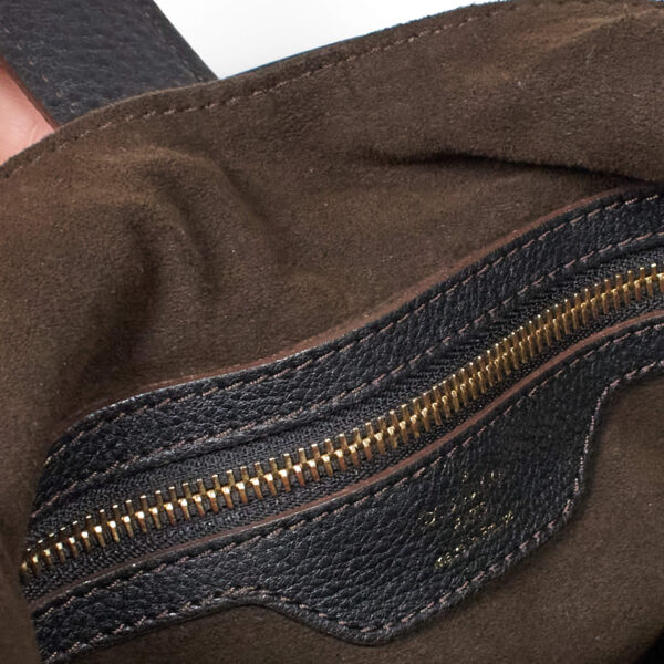 Diese Tasche lässt sich feminin in der Hand tragen oder praktisch auf der Schulter. Die Form ähnelt der klassischen Hobo Tag, ist aber im oberen Bereich leicht abgewandelt. Das Inneren der Tasche ist mit einem braunen Stoffe ausgekleidet und verfügt über Seitenfächer.