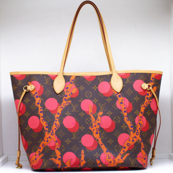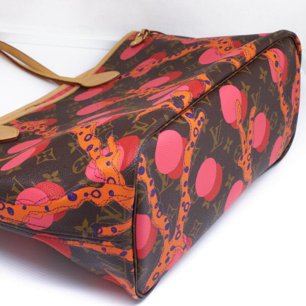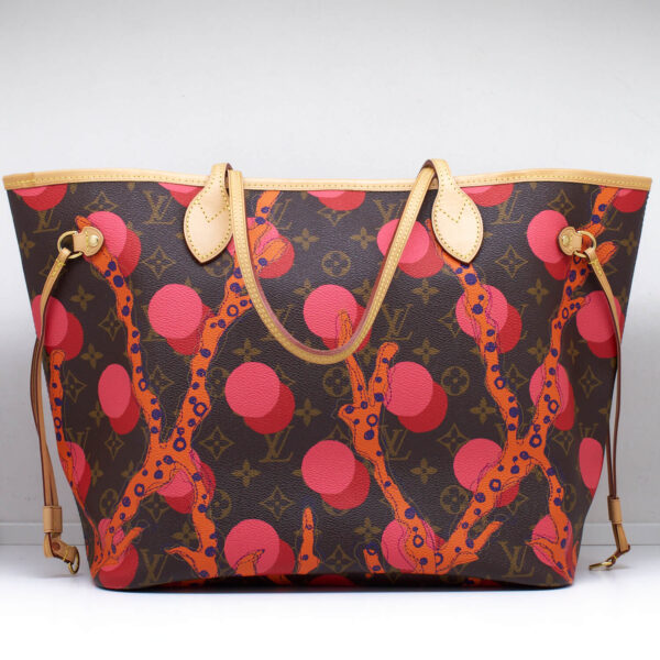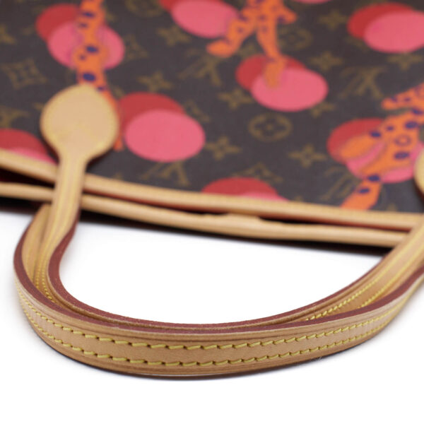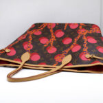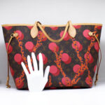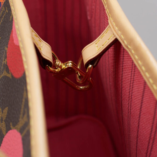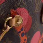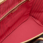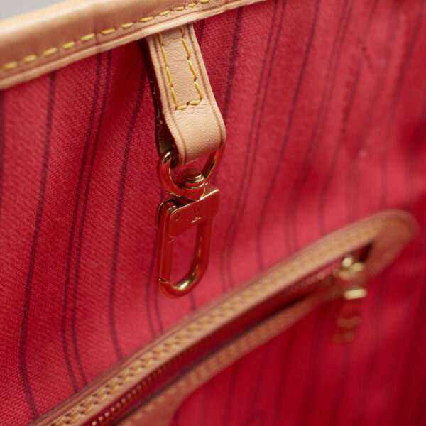 Tragen Sie die Neverfull chic in der Hand oder schultern Sie sie bequem. Die Tasche wird über einen Karabiner verschlossen und kann über Lederriemen an den Seiten zusammengezogen werden, um die Form zu ändern.