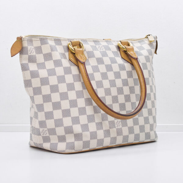 Ein zeitloses Modell aus dem Hause Louis Vuitton: Azur Canvas, klares Design und die perfekte Größe! Helle Farbtöne und eine goldene Hardware machen diese Tasche zur perfekten Begleiterin im Sommer!