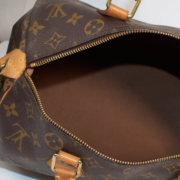 Tragen Sie diese Speedy feminin in der Hand. Im Inneren ist die Speedy mit einem hochwertigen Stoff ausgekleidet und verfügt über ein Einsteckfach. Das unverkennbare Louis Vuitton Schloss darf selbstverständlich bei dieser Ikone auch nicht fehlen.