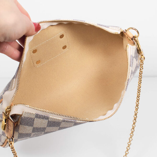 Dieses Modell verfügt über ein großes Innenfach und kann über einen Reißverschluss geschlossen werden. Der kurze Riemen der Tasche lässt Sie die Tasche als Clutch oder auch als zusätzliche Innentasche für Ihre Handtasche nutzen. Mit dem längeren Riemen können Sie die Tasche auch stylisch als Crossbodybag tragen.