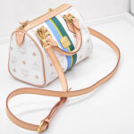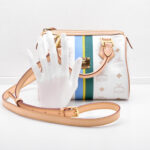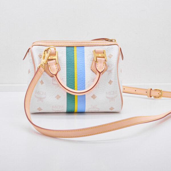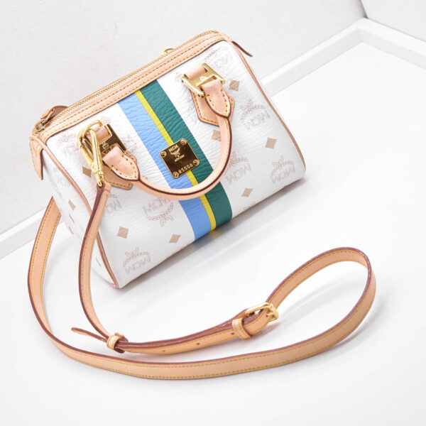 Die Boston Bag besticht durch ihre praktische und doch kleine Form. Sie lässt sich feminin in der Hand tragen oder sportlich und praktisch Crossbody, denn sie verfügt über einen abnehmbaren, verstellbaren Schulterriemen. Innen verfügt sie über ein kleines Einsteckfach, welches sich über einen Reißverschluss schließen lässt. Das Innere ist in einem hochwertigen, hellrosefarbenem Stoff ausgekleidet.