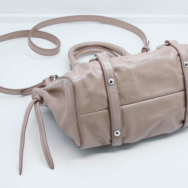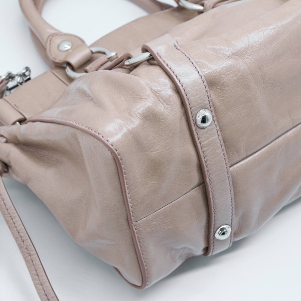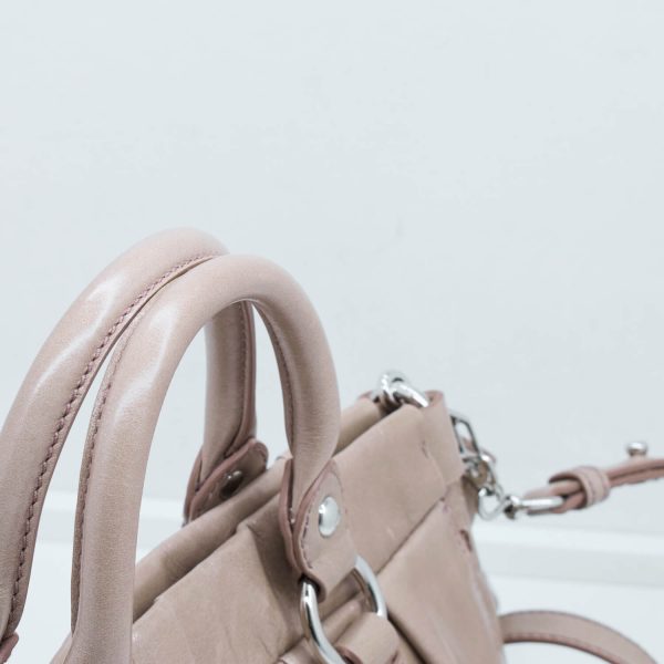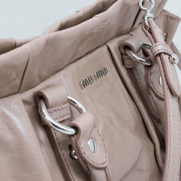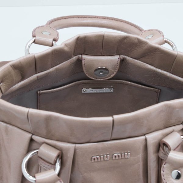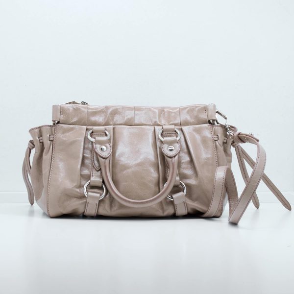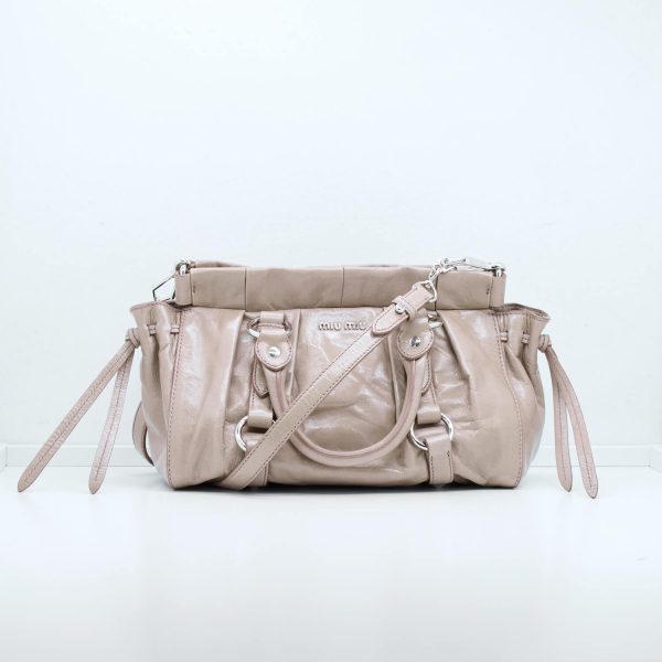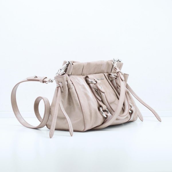 Dieses Modell des Hause Miu Miu lässt sich weiblich in der Hand tragen oder durch einen abnehmbaren Schultergurt praktisch am Körper tragen. Die Form bietet die Möglichkeit aus dieser Tasche den perfekten Alltagsbegleiter zu machen oder sie Abends schick zum Essen auszuführen. Die Tasche lässt sich über einen Druckknopf schließen und verfügt Innen über ein Einsteckfach.