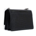 Saint Laurent SUNSET TASCHE in Medium KROKO-PRÄGUNG Schwarz mit silberner Hardware