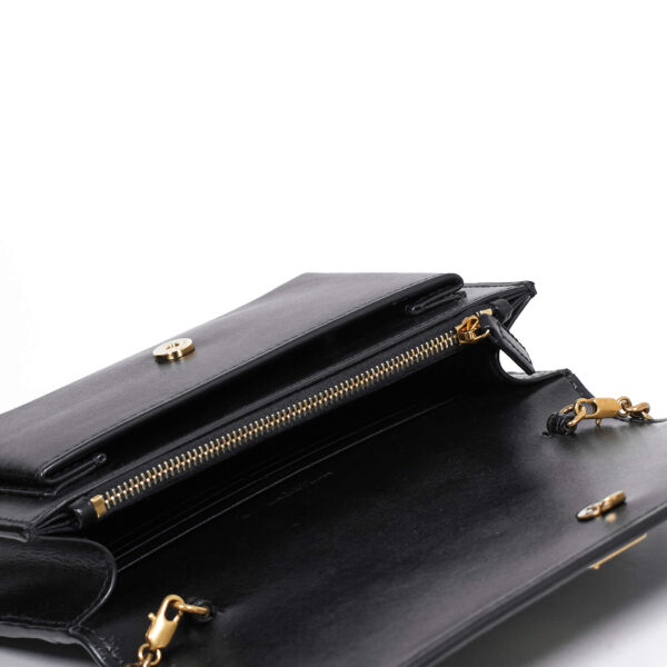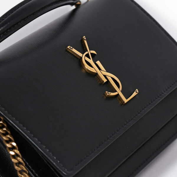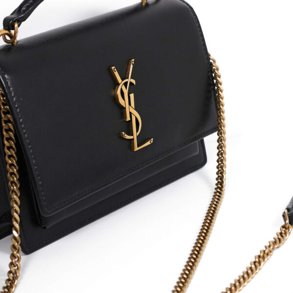 Die Yves Saint Laurent Saint SUNSET CHAIN WALLET Tasche ist heiß begehrt! Das Modell Sunset besticht durch sein klassisches und doch modernes Design. Die Hardware und das YSL Logo sind in einem schonen Goldton gehalten. Sie kann durch den praktischen Kettenriemen elegant auf der Schulter oder auch sportlich crossbody getragen werden. Auch lässt sich die Kette durch Karabiner entfernen und so kann diese Tasche auch als Clutch benutzt werden