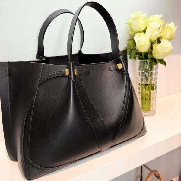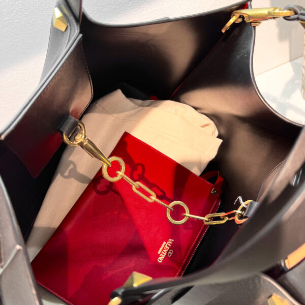 Tragen Sie diesen Shopper lässig in der Hand oder durch den schicken Schulterriemen auch lässig über der Schulter. Die Tasche kommt mit einer roten Pochette, welche im Inneren befestigt ist.