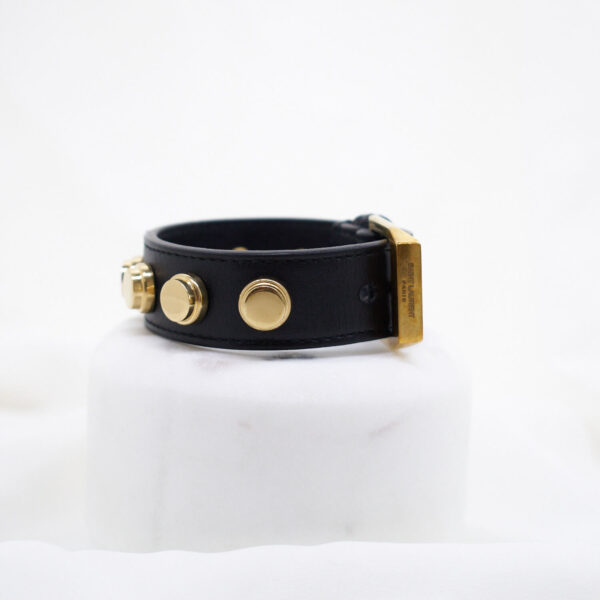 Dieses Armband ist ein schicker Traum und gehört zu jedem YSL-Liebhaber. Es wird über einen schicken Gürtelverschluss in Altgoldoptik verschlossen.