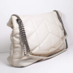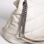 Dieses Liebhabermodell kann durch den doppelten Kettenriemen elegant über der Schulter oder auch sportlich crossbody getragen werden. Das Innenleben der Tasche ist mit einem hochwertigen, schwarzen Stoff ausgekleidet. Verschlossen wird die Tasche über einen Magnetverschluss.