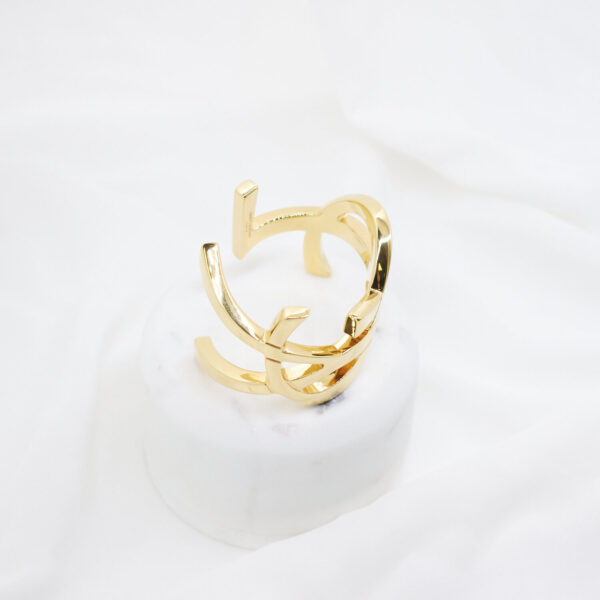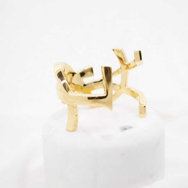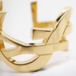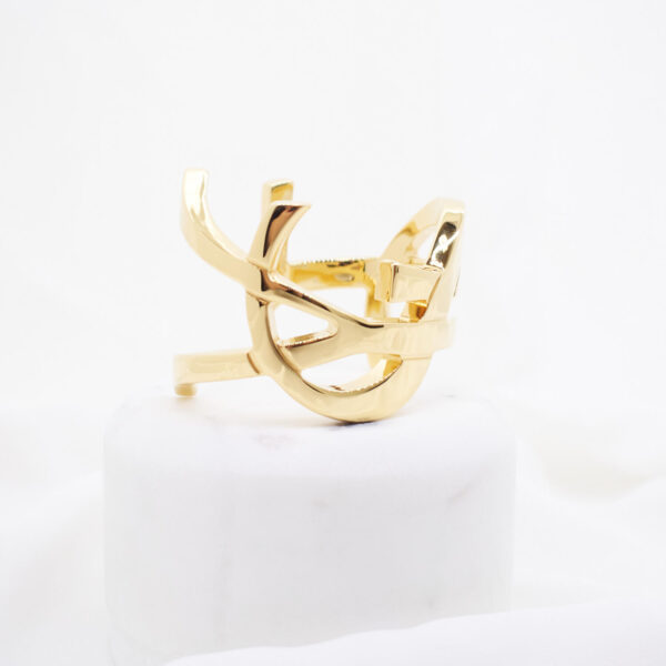 Ein absoluter Hingucker aus dem Hause Saint Laurent. Das zeitlose YSL Logo windet sich um den goldenen Armreif und schmückt elegant den Arm der Trägerin.